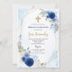 Dammblå blommig spansk inbjudan till första kommunion