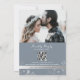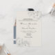 Romantisk allt-i-ett bröllopsinbjudan i mjuk dammblå färg, med ömtåliga vintage blomillustrationer och en modern QR-kod RSVP. Baksidan visar ett foto av paret, som kombinerar tidlös charm med personlig stil. Perfekt för höst- eller minimalistiska bröllop.