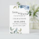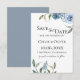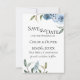 Dammblå akvarellblommor med trädgårdsväxter, Spara datum-kort för bröllop.
