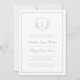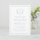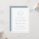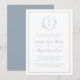 Dammblå Bröllop Invitation med Monogram. Denna eleganta och klassiska bröllopsinbjudan har en dammblå bladkrans med brudens och brudgummens monogram och en klassisk dubbel ram. Texten är dammblå, och baksidan av inbjudan är dammblå.