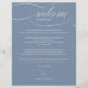 Välkomstprogram för dammblå bröllopshelg-kort