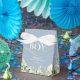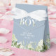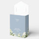 En elegant tacksamhetslåda för babykalas med grönska och chic typografi på en dammblå bakgrund. Du kan anpassa med ditt eget tackmeddelande under locket. Ett perfekt sätt att tacka dina gäster! Designad av Thisisnotme
