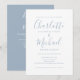 Med signaturstilnamn kan denna eleganta dammblå bröllopsinbjudan anpassas med all din speciella bröllopsinformation på framsidan och din bröllopswebbplatsinformation och QR-kod på baksidan. Designad av Thisisnotme