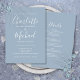 Med signaturstilnamn kan denna eleganta dammblå bröllopsinbjudan anpassas med all din speciella bröllopsinformation på baksidan, inklusive din RSVP, boende och ytterligare detaljer. Designad av Thisisnotme©