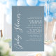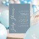 Elegant understatement, denna dammiga blå bebishower-inbjudan kombinerar enkelhet och modern sofistikering. Den rena layouten och det flytande skrivsättet skapar en förfinad, minimalistisk design som passar alla moderna eller klassiska shower-teman. Perfekt för föräldrar som uppskattar subtil elegans, är denna inbjudans mjuka blå nyans perfekt för en bebispojkes shower, medan skrivstilens teckensnitt ger en personlig touch. Dess mångsidiga utseende passar sömlöst med olika dekorstilar, vilket gör det till ett idealiskt val för att vara värd för en stilren och minnesvärd händelse som fokuserar på att välkomna den nya ankomsten.