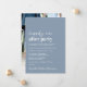 Minimal modern dammblå bröllopsannons och mottagning eller efterbröllopsfest inbjudan. Framsidan har "Happily Ever After Party" i en blandning av ett modernt vitt manus och djärv trendy vit typografi. Anpassa ditt meddelande och din inbjudan i mer detalj och lägg till dina namn i ett signatur-liknande manus. Baksidan visar ditt bröllopsfoto, dina förnamn och bröllopsdatum.
