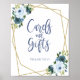 Dammblå guld blomsterkort och present skylt