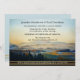 En efterbröllopsinbjudan, endast bröllopsfest, eller efterbröllopsinbjudan med en målad bergslandskapsscen. Baksidan visar en dammblå design med gyllene kant.