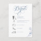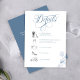 Elegant dammig blå bröllopsinformationskort med romantisk kalligrafiskrift och en ren, minimalistisk tidslayout. Inkluderar en skannbar QR-kod för enkel åtkomst till din bröllopswebbplats eller svar, vilket gör det enkelt för gästerna att se evenemangsinformation och svara online. Designad med mjuka botaniska accenter och tidlös typografi, är detta kort perfekt för moderna, klassiska eller formella bröllop som söker en sammanhängande och sofistikerad brevpappersserie.