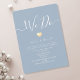 Vi presenterar vår enkla och moderna mikrobröllopsinbjudan - perfekt designad för er unika minimony. Med en sofistikerad palett i vitt och dammigt blått utstrålar denna inbjudan en modern elegans. Ett guldpräglat hjärta tillför precis rätt mängd charm och värme, och symboliserar den djupa och varaktiga kärleken mellan er två. Skräddarsydd för intima tillställningar sätter denna inbjudan scenen för en hjärtlig ceremoni där varje detalj berättar den vackra historien om er kärlek.