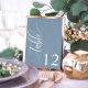Dammblå modern kalligrafi bröllop bordsnummer