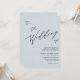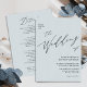Dammblå Modern Script Allt I Ett Enkel Minimalistisk Bröllopsinbjudan Kort. Fira din speciella dag med detta eleganta och vackra bröllopsinbjudningskort för att försköna din speciella tillställning. Alla texter är förarrangerade för att du enkelt och snabbt ska kunna anpassa med dina egna detaljer. Om du behöver ytterligare anpassning eller matchande artiklar, vänligen maila alldaybreakfastzazzle@gmail.com – vi hjälper gärna.