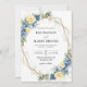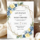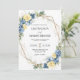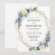 Dammblå och gula blomsterguldbordskort bröllop inbjudningar