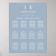 Dammblå och guldmonogram sittplatskarta för bröllo poster
