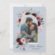 Dammblå och vinröd blomsterfoto Arch Bröllop Inbjudningar