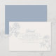 Det här är ett dammigt blått brölloppsdetaljkort med en rokokostil blomsterkant och klassiska serif-typsnitt. De flesta formuleringar kan redigeras för att passa dina planer, inklusive namn, datum och plats. Designen har en lugn, romantisk känsla och fungerar bra med en mängd olika bröllopsstilar.