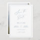 Ett minimalistiskt kort för att spara datumet med modern kalligrafi i en dammblå nyans för det perfekta sättet att tillkännage din bröllop.