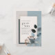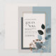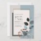 Sätt en chic, förfinad ton för din fest med denna minimalistiska, dammiga blå sotlöv-guld ram-inbjudan! Vi älskar hur denna design uppnår en sofistikerad balans genom att definiera textområdet med en slank metallisk guldlinje-ram som kastar en subtil skugga för djup. Bakgrunden är byggd av lugnande, lagerlagda geometriska block i skifferblått och blekt beige, som skapar en skarp, modern bakgrund. Denna struktur kompletteras vackert av en stiliserad botanisk gren i hörnet, med djärva, djupa sotlöv och mjuka dammiga blå accenter som förankrar designen med en organisk touch. Detta är den perfekta brevpapper för ett rent, strukturerat eller urbant minimalistiskt bröllop. Du kan enkelt använda denna vackra inbjudan för att dela din ceremonis detaljer, för att beskriva din mottagnings schema, för att detaljera din eleganta klänningskod eller för att göra dina resplaner tydliga. Den mångsidiga designen är också lämplig för en högklass