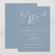 Denna inbjudan till bat mitzvah har "Bat Mitzvah" i ett stort, flödande vitt skrivstil överst på en dammblå bakgrund, med den hedrades namn i feta vita versaler och all information om ceremonin och mottagningen i ren kursiv stil nedan. Det finns också utrymme för föräldrarnas namn och evenemangets webbplats. En modern, elegant inbjudan för en flickas bat mitzvah som fungerar vackert för alla lokaler eller firande stilar.