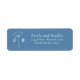 Dammblå vit monogram flitig accentadress returadress etikett