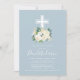 Dammblått kors med krämfärgade blommor, dop pojke inbjudningar