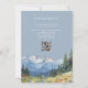 Dammig blå akvarell bergsbröllop med QR-kod Inbjudningar