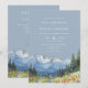 Denna eleganta dammiga blå akvarell-bergskalas bröllopsinbjudan kan anpassas med din information i chic typografi med din bröllopswebbplats QR-kod på baksidan. Designad av Thisisnotme