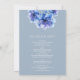 Denna eleganta dammiga blå akvarell blomsterbröllopsinbjudan kan anpassas med din information i chic typografi och all din speciella bröllopsdagsinformation på baksidan, inklusive din RSVP, boende och ytterligare detaljer. Designad av Thisisnotme