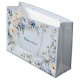 Dammig blå akvarell Elfenbensfärgade blommor blad Rustik stor presentpåse. Unikt, vackert, stilrent design. Lätt att anpassa. Typsnitt, storlek och färger kan ändras. Matchande artiklar finns tillgängliga.