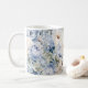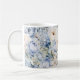 Dammig blå akvarell Elfenbensvita blommor blad Rustik kaffemugg. Unik, vacker, stilren design. Lätt att anpassa. Typsnitt, storlek och färger kan ändras. Matchande artiklar tillgängliga.