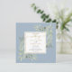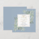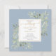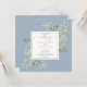 Med känsliga rustika eucalyptus akvarellblad på en dammig blå bakgrund. Denna moderna botaniska bröllopsinbjudan kan anpassas med dina speciella bröllopsdetaljer. Designad av Thisisnotme©