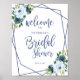 Dammig blå akvarellblomma Bröllopsdusch Välkommen Poster