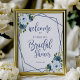En vacker dammig blå blomster-, geometrisk välkomstskylt för en bröllopsdusch. Lätt att anpassa med dina detaljer. Vänligen kontakta mig via chatt om du har frågor om konstverket eller behöver anpassning. OBS: För hjälp med beställningar, leverans, produktinformation etc., kontakta Zazzle kundtjänst direkt https://help.zazzle.com/hc/sv/articles/221463567-Hur-kontaktar-jag-Zazzle-s-kundst%C3%B6d-