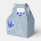 Dessa moderna, eleganta dammiga blåa akvarellblommiga första kommunion-favoritboxar kan anpassas med din information i modern typografi. Designad av Thisisnotme©