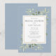 Elegant dammig blå bröllopsdusch-inbjudan med botanisk grönska akvarell eukalyptusblad. Denna stilfulla inbjudan kan anpassas med din bröllopsdusch-information, skriven i modern typografi. Designad av Thisisnotme©
