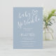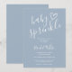 En modern minimalistisk inbjudan till stänk dusch för bebis med ett sött handritat hjärta och snygg typografi på en blå dammig bakgrund. Designad av Thisisnotme©