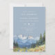 Denna eleganta akvarell bergsvildblomma bröllopsinbjudan kan anpassas med din information i chic typografi på en dammig blå bakgrund och ett speciellt foto på baksidan. Designad av Thisisnotme