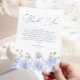 Dammig blå blombröllopsfest tack kort