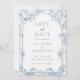 Dammig blå blomklänning Bröllop Spara datum-kort