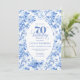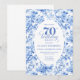 Dammig blå blommig 70-års födelsedagsinbjudan inbjudningar