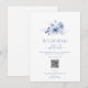 Dela all viktig information om din speciella dag med detta eleganta bröllopsinformationskort. Med ömtåliga dammiga blå akvarellblommor och en blandning av klassisk och script-typografi är detta kort både stilfullt och funktionellt. Inkluderar utrymme för ceremonitider, lokalinformation, boende och en QR-kod eller webbplats för enkel gästaccess. En vacker tillägg till alla brölloppsuppslag med ett romantiskt blått tema.