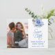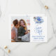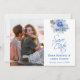 Fånga din kärlek med detta eleganta foto Spara datum med mjuka dammiga blå blommor. Ett romantiskt och tidlöst val för vår-, trädgårds- eller klassiska bröllop. Lägg till ditt favoritfoto för en personlig touch till din underrättelse.