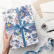 dammig blå blommönster presentpapper