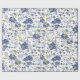 Blått och akvatiskt blommönster på vitt.