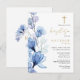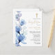 Dammig blå blomster monogram dop inbjudan