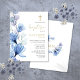 Denna eleganta dammiga blå genomskinliga blomster dop inbjudan vykort kan anpassas med din information i chic typografi med ditt monogram på baksidan. Designad av Thisisnotme