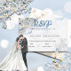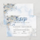 Vackra dammiga blå och elfenbensvita rosor med dinglande band utförda i mjuka vattenfärger. 100% kundnöjdhet med “Zazzle” Ett perfekt RSVP för din speciella dag.