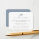 Dammig blå akvarell blomsterarrangemang, Bröllopskort. Baksidan av kortet har en solid dammig blå färg. Kortmallen tillhandahåller flera rader för din anpassade information. Chic typografisk designstil, visad i dammig blå och kompletterande grå, kan också anpassas.