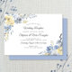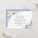 Vacker dammig blå och dämpad gul akvarellblomma inbjudan suite. Vår mottagningsinbjudan är lämplig för de nygifta paren som har rymt, haft en privat ceremoni, en tingsrättsceremoni osv. och fortfarande vill fira med vänner och familj. Se hela kollektionen genom att klicka på länken direkt under huvudd bilden.