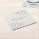 Eleganta fyrkantiga pappersunderlägg med delikat dammig blå blomsterlinjekonst och anpassningsbara namn och datum. Ett stilrent och praktiskt tillägg för bröllopsmottagningar, brudshower eller förlovningsfester. Koordinerar vackert med matchande barvaror och dekorationer.